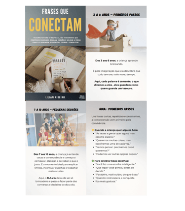 Você terá acesso a um guia completo para formar crianças mais conscientes, seguras e preparadas para fazer escolhas melhores.